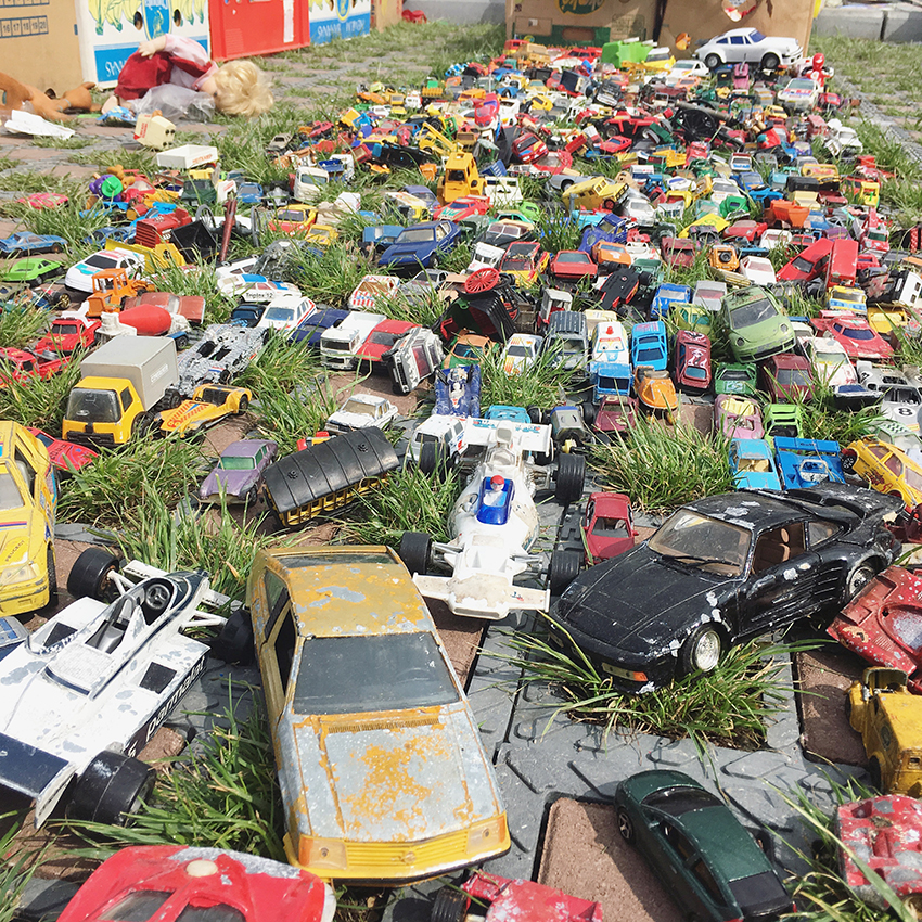 Coup de chance, après moults efforts, on avait réussi à trouver un stand à partager, ce qui n’était vraiment pas gagné au vu du parcours du combattant que c’était de pouvoir s’inscrire en tant que lillois mais habitant en dehors du périmètre défini. Bref, un coup de fil et nous voilà bien contents de pouvoir vivre cette nouvelle braderie de l’intérieur. Et c’est sans regret : bonne humeur, grands sourires et visiteurs au rendez-vous. Ce jour là, nous n’avons presque pas senti la différence avec les éditions précédentes (si l’on oublie le gros bloc de béton qui clôturait notre stand, vite recouvert de nos trouvailles d’un jour).