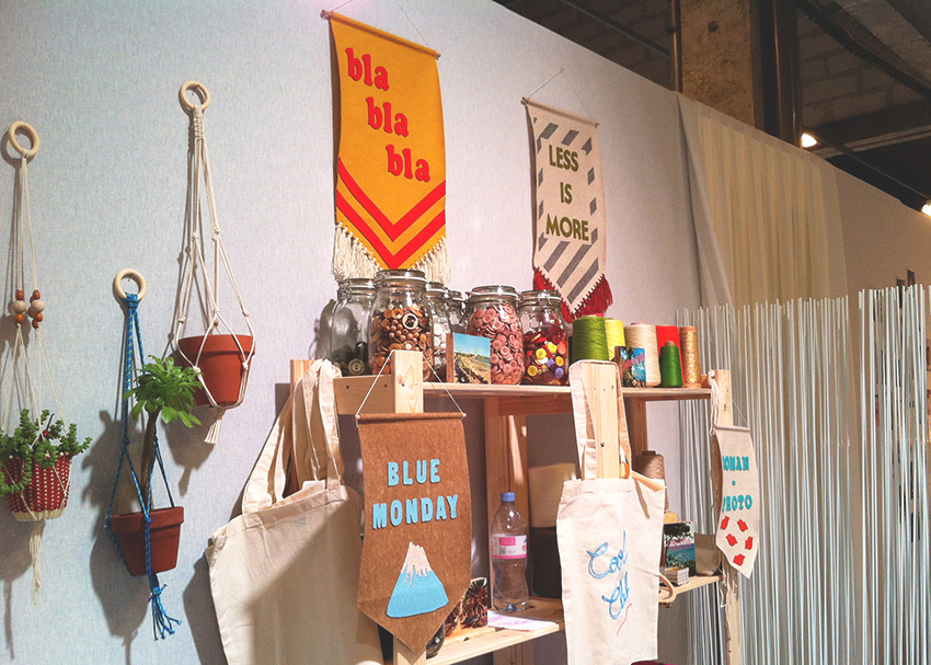J’ai donc sauté sur l’occasion pour proposer des ateliers que je voulais mettre en place depuis longtemps et ressorti les grands classiques. Au menu, initiation à la reliure à travers la création d’un carnet personnalisé (des classiques on a dit !), réalisation de porte-plantes en macramé, customisation de tote-bags à l’aide de la broderie entre autres ou fabrication d’un tableau en « string-art », le tout dans un petit corner aux couleurs de Wundertüte.
