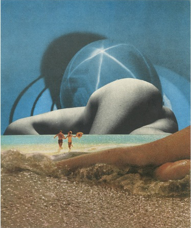Ce que je trouve assez drôle avec le travail des artistes de cette nouvelle génération, c’est, que leurs collages soient inspirés ou non des productions antérieures, ils gardent toujours un côté « vintage » et sont souvent difficiles à dater, notamment grâce à l’usage quasi exclusif d’images issues de magazines anciens.
