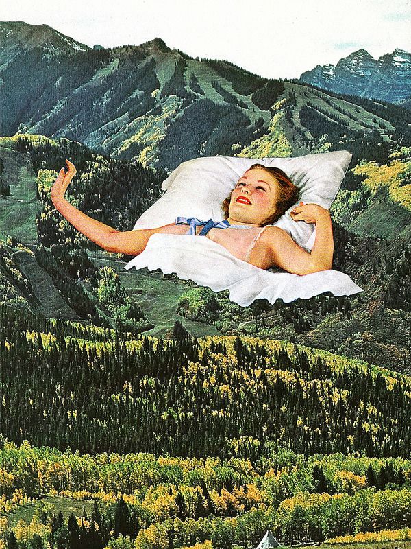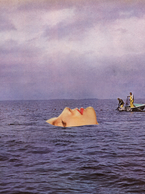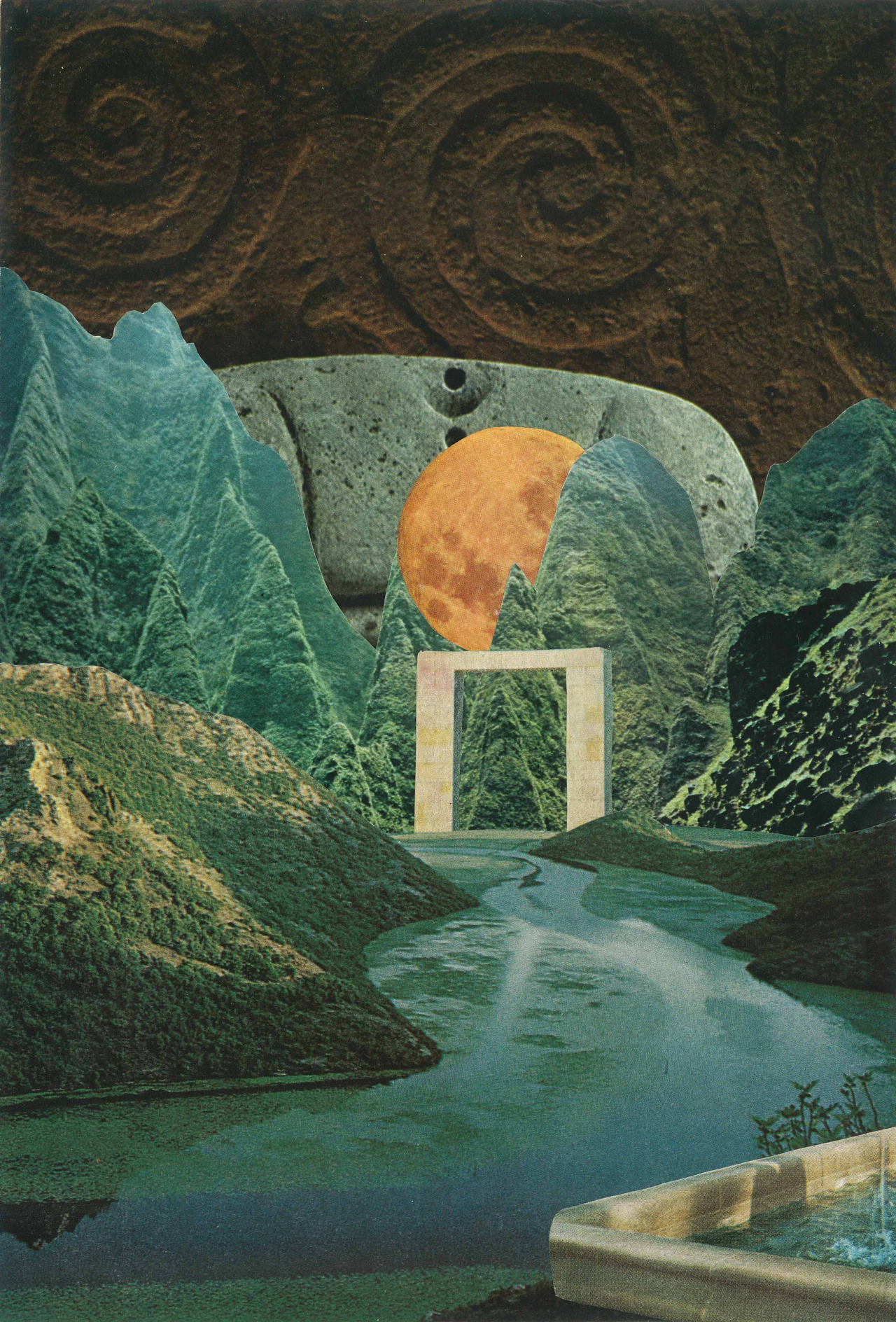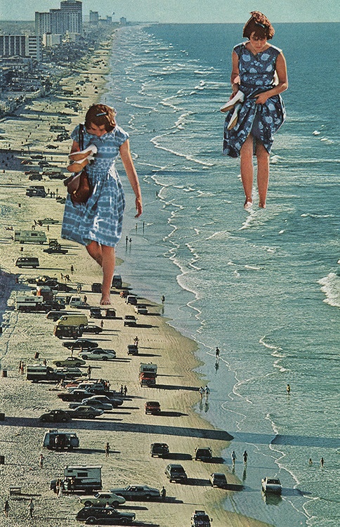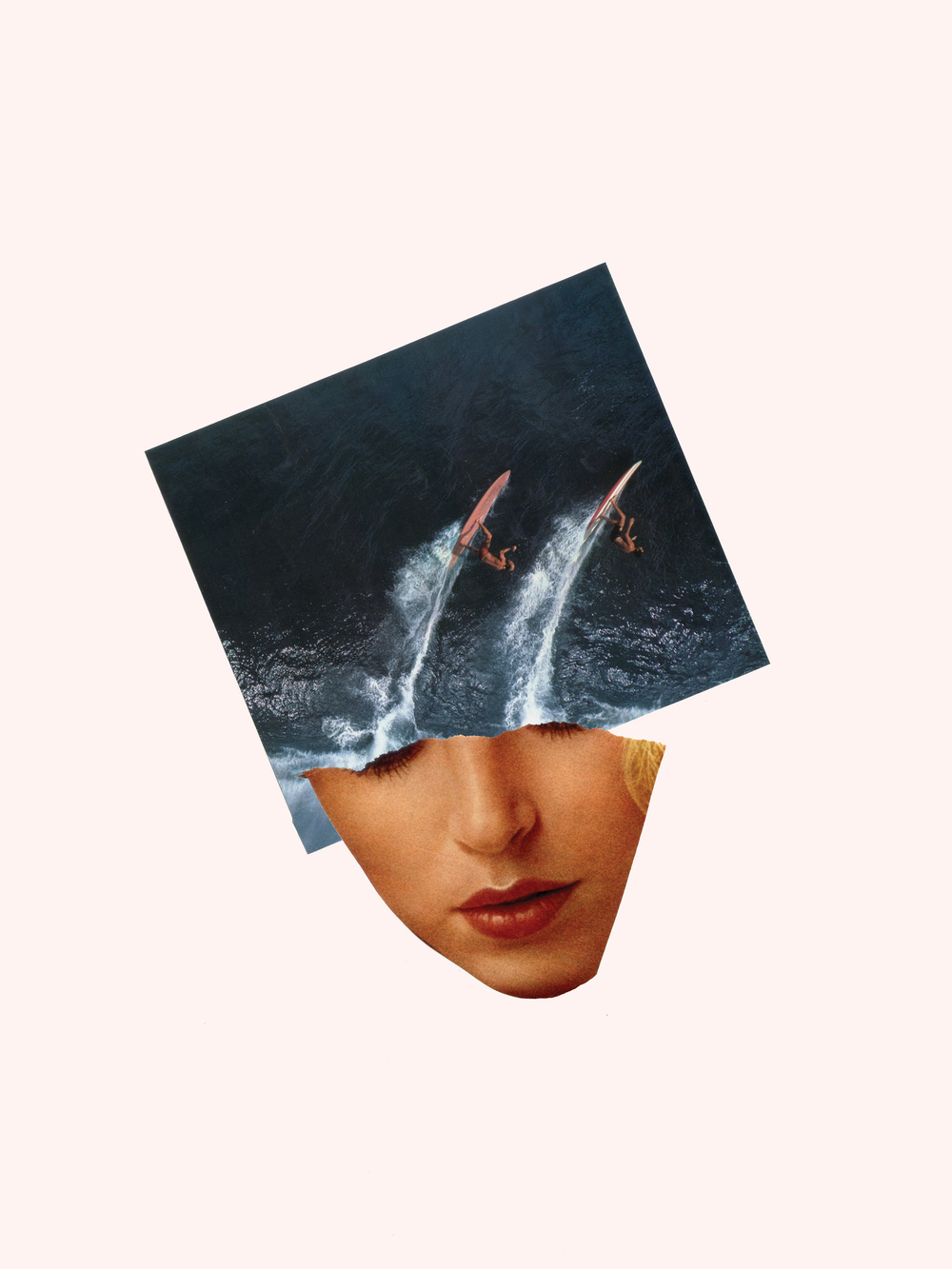 Toujours dans la famille surréaliste, au tour de Sarah Eisenlohr. Ce que j’aime dans les collages de Sarah, c’est qu’ils sont empreints de calme et de poésie. En mêlant souvent paysages et personnages, tous issus d’anciens exemplaires de National Geographic, la jeune femme, originaire du Montana, cherche à interpeller sur l’impact de l’homme sur la nature.