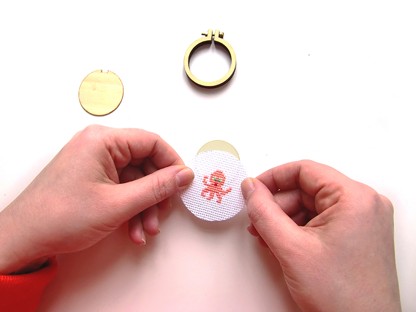 Voilà, la mise en place de votre broderie est terminée. Passons maintenant au montage du bijou.