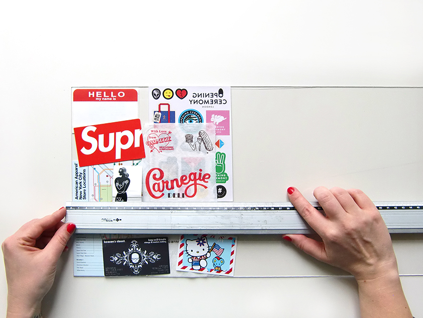 Tout d’abord, placez vos souvenirs sur un bord de votre plaque. Le cas échéant, recoupez-les ou retirez les épaisseurs en trop.