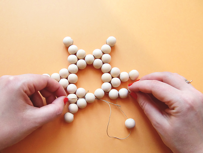 Une fois vos 6 branches réalisées, tirez une dernière fois sur votre fil de manière à ce qu’il soit suffisamment tendu pour que les perles s’imbriquent les unes dans les autres.