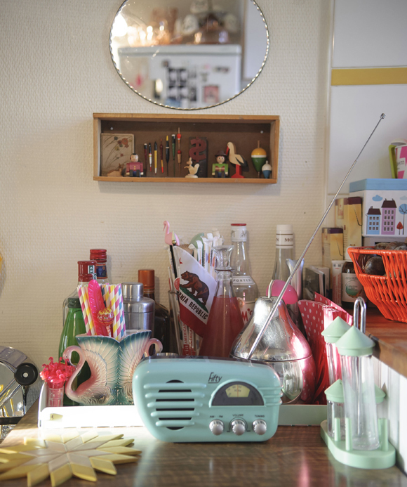 Du pastel pour changer et de nouveau, ce mélange d’objets chinés et de trouvailles improbables. Entre Denver et ma glace lumineuse, mon coeur balance.