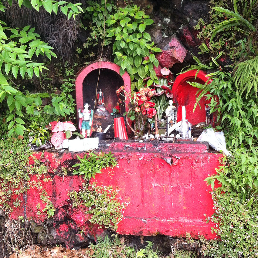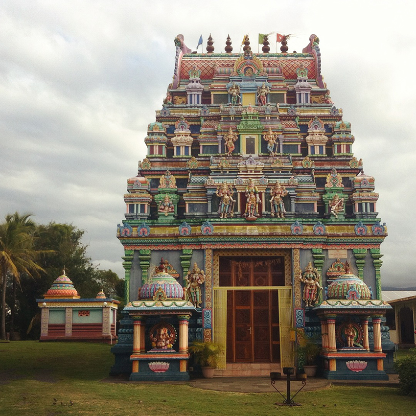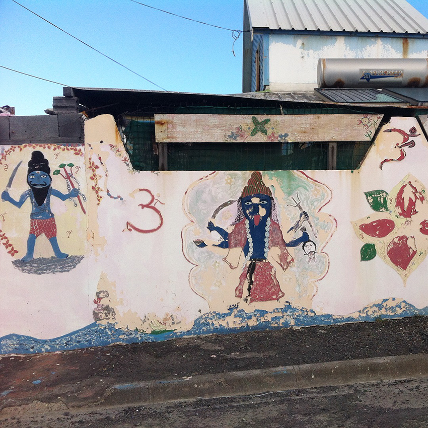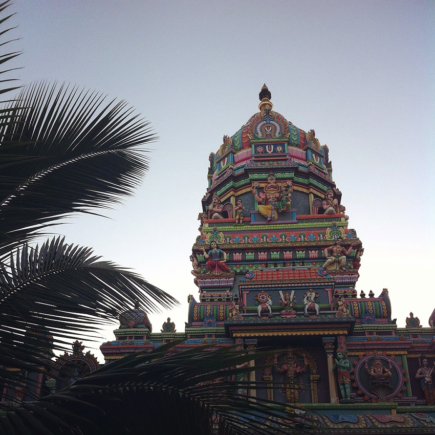 Aujourd’hui, on part à la découverte d’une autre facette de l’île. Plus de végétation, place aux humains avec les jolies publicités peintes à la main que l’on retrouve d’un coin à l’autre de l’île, les géniales et parfois improbables Saint-Expedit, sorte de micro-chapelles à l’effigie d’Expedit que l’on trouve un peu partout, et mon vrai coup de coeur de là-bas : les temples tamouls. Ces temples qui ont un peu rythmés tout notre voyage : à chaque temple, un arrêt, une tentative de voir « comment c’est à l’intérieur » et un émerveillement digne d’un enfant de 5 ans. Toujours.